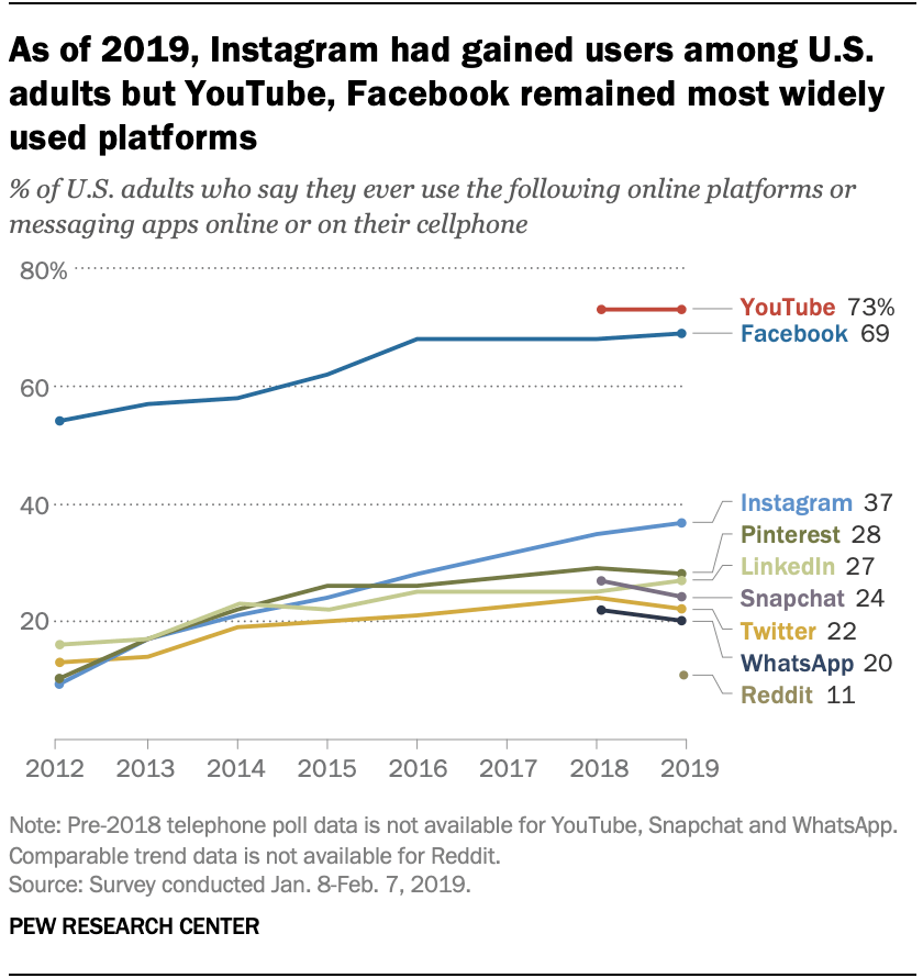 Pew Research Center, (2019, June 12). Social Media Fact Sheet. Pew Research Center. https://www.pewresearch.org/internet/fact-sheet/social-media/